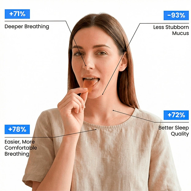 Place one strip on your tongue and allow it to dissolve completely. Do not chew or swallow immediately; this ensures the nutrients are absorbed through the lining of your mouth for maximum speed. Use it whenever you feel your breathing is restricted or want to enhance lung comfort.